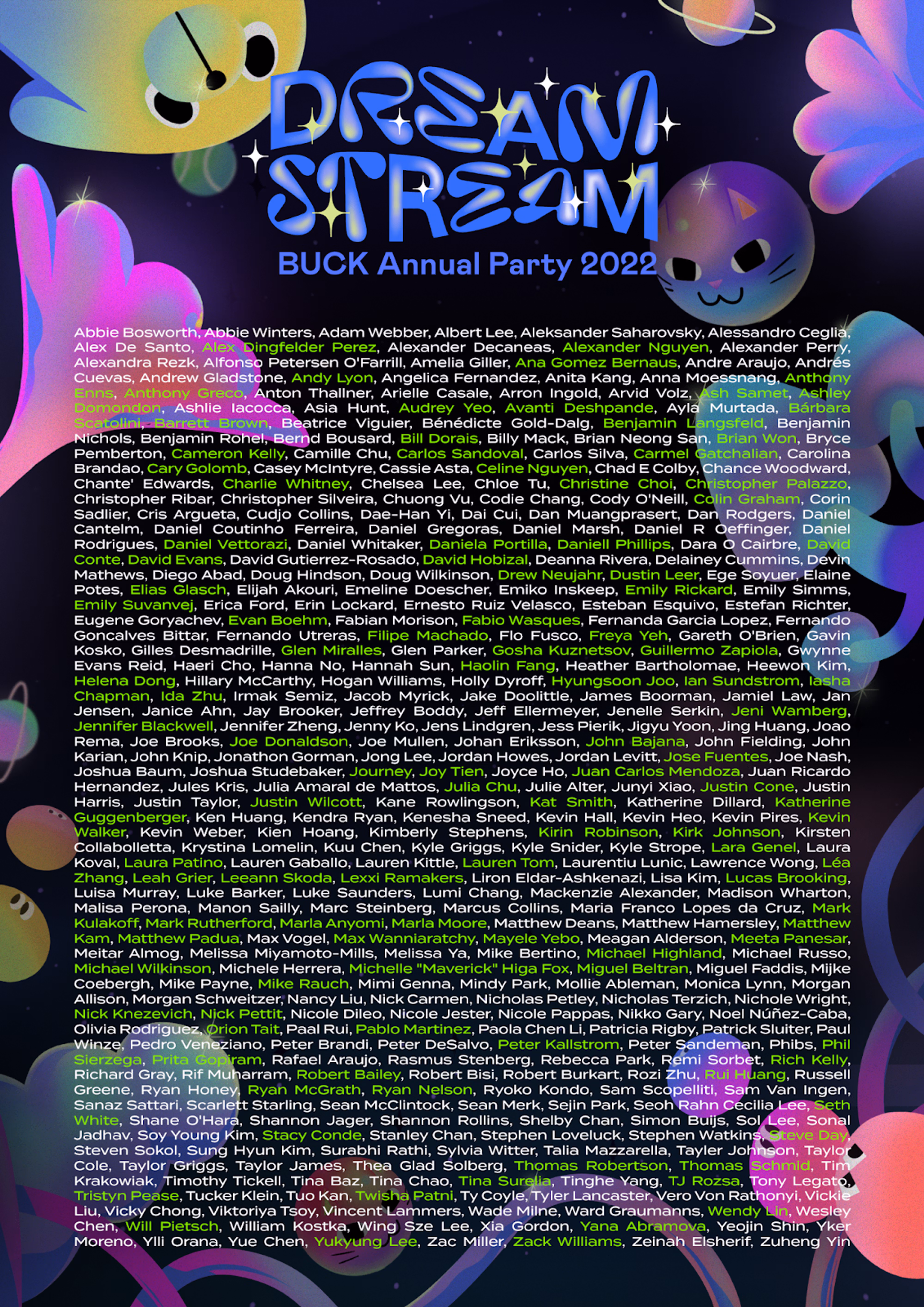 Dream Stream was dreamed up by the Buck collective, with 113+ people contributing in some way. Here’s what I brought to it: